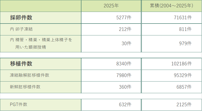 当院における不妊治療実績(2026年1月更新、4施設合算)